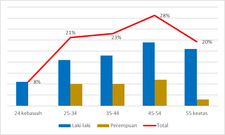 Grafik 1. Kelompok Usia Pembaca Prisma N=146